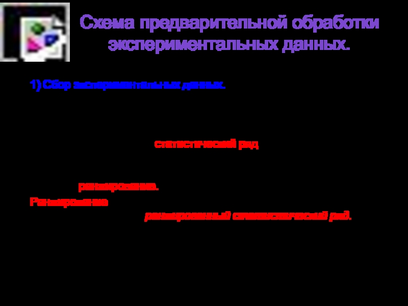 Слайд 5Схема предварительной обработки экспериментальных данных.