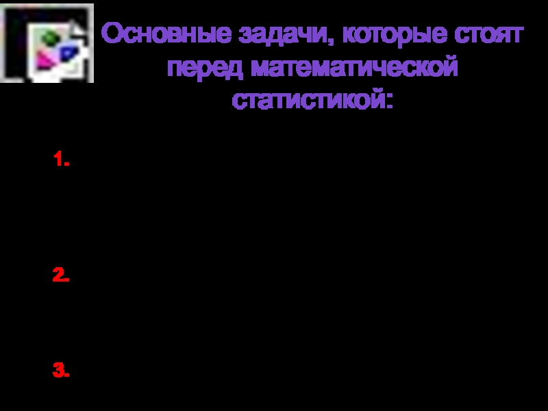 Слайд 4Основные задачи, которые стоят перед математической статистикой: