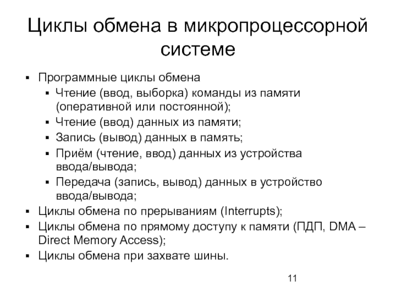 Слайд 11Циклы обмена в микропроцессорной системе