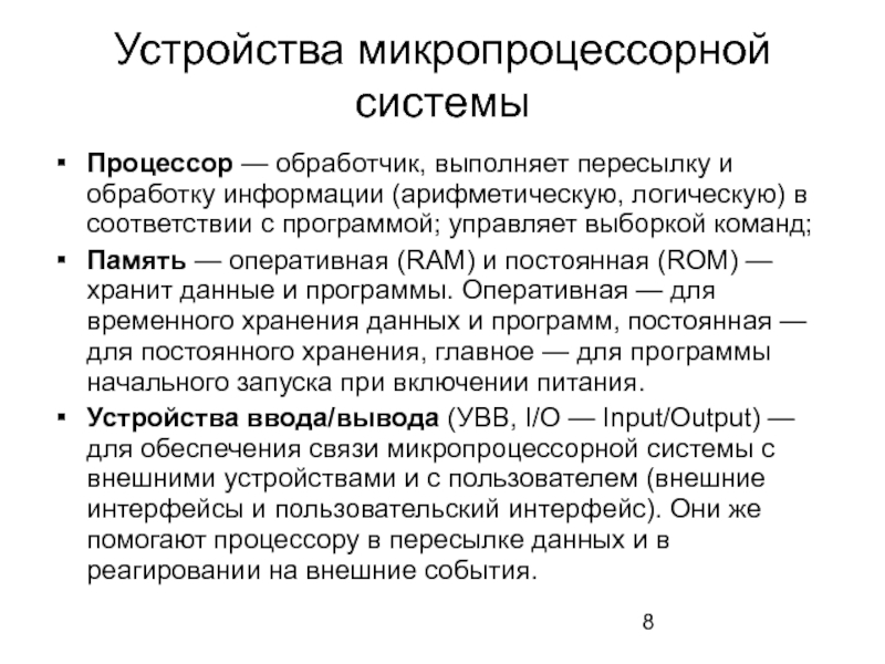 Слайд 8Устройства микропроцессорной системы