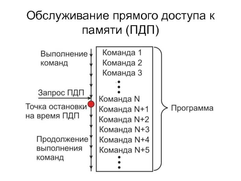 Слайд 15Обслуживание прямого доступа к памяти (ПДП)