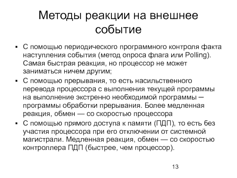 Слайд 13Методы реакции на внешнее событие