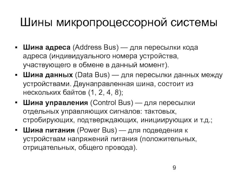 Слайд 9Шины микропроцессорной системы
