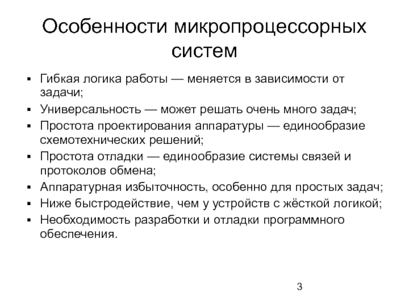 Слайд 3Особенности микропроцессорных систем
