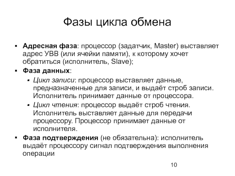 Слайд 10Фазы цикла обмена