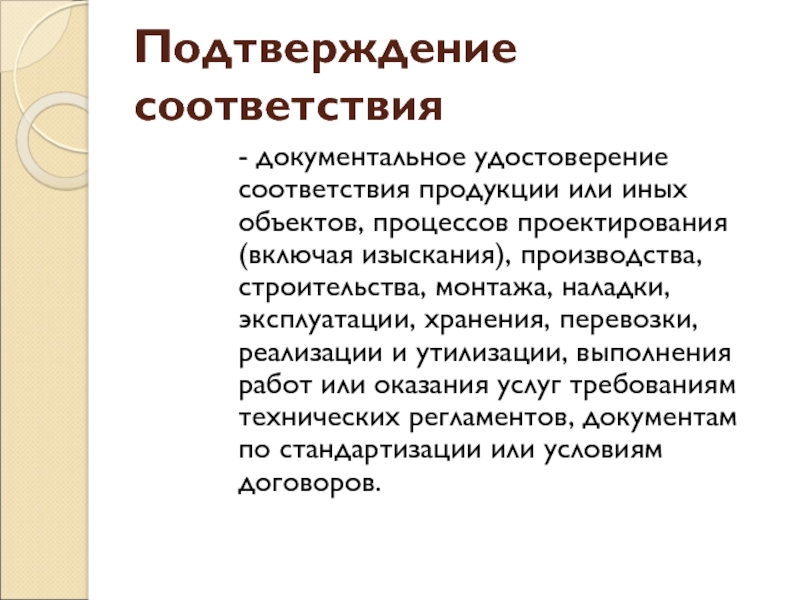 хранения, перевозки, реализации и утилизации, работ, услуг или иных объектов техническим регламентам, документам по стандартизации , условиям договоров.