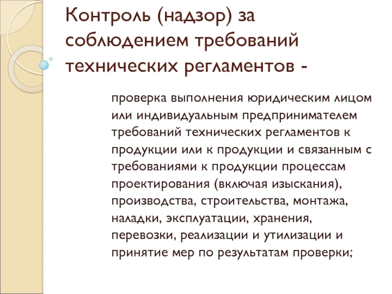 Слайд 21Контроль (надзор) за соблюдением требований технических регламентов -