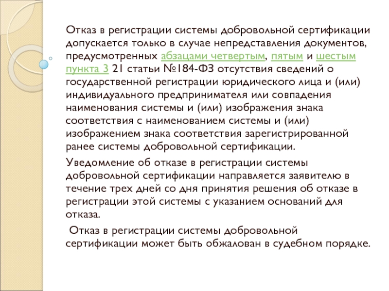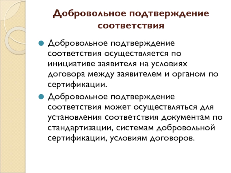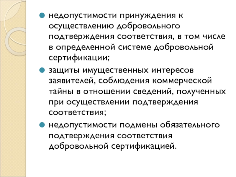 Слайд 26недопустимости принуждения к осуществлению добровольного подтверждения соответствия, в том числе