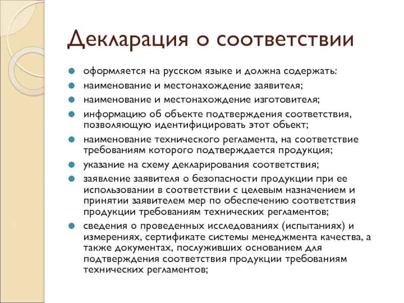 декларацию о соответствии или обращается за получением сертификата соответствия, получает
