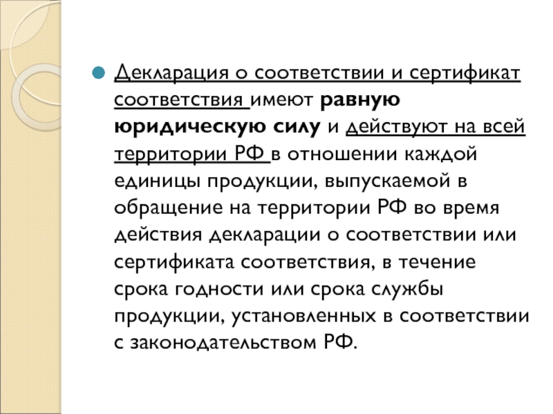 приостанавливать или прекращать реализацию продукции, если срок действия сертификата соответствия или декларации о соответствии истек, за исключением продукции, выпущенной в обращение на территории Российской Федерации во время действия декларации о соответствии или сертификата соответствия, в течение срока годности или срока службы продукции, установленных в соответствии с законодательством Российской Федерации.