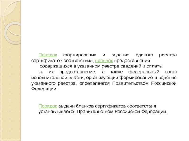 Слайд 69Порядок формирования и ведения единого реестра сертификатов соответствия, порядок предоставления