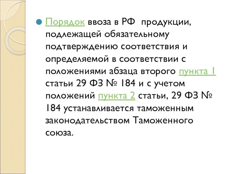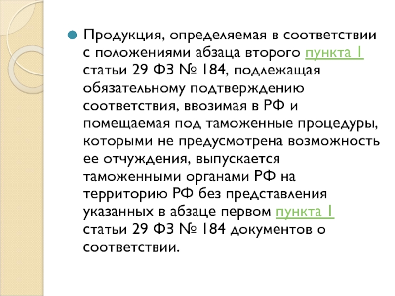 статьи 29 ФЗ № 184, подлежащая обязательному подтверждению соответствия, ввозимая