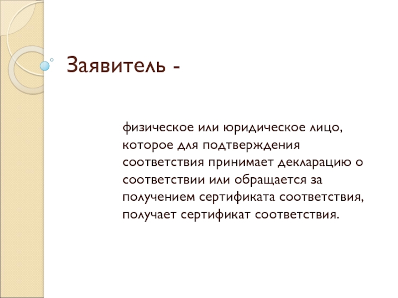 физическое или юридическое лицо, которое для подтверждения соответствия принимает