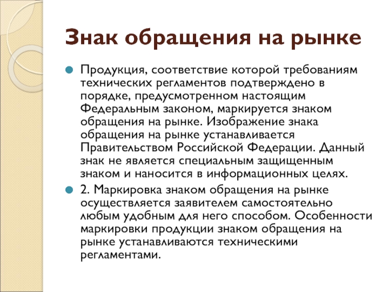 рынке. Изображение знака обращения на рынке устанавливается Правительством Российской Федерации. Данный знак не является специальным защищенным знаком и наносится в информационных целях.