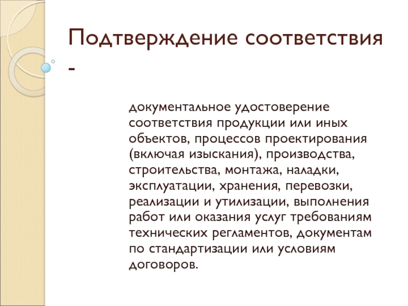 - документальное удостоверение соответствия продукции или иных объектов, процессов