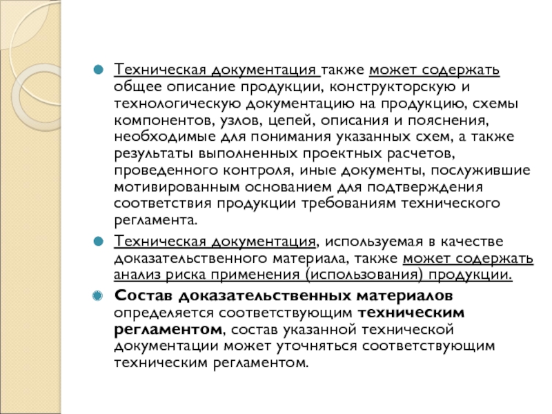- использовать техническую документацию для подтверждения соответствия продукции требованиям технических регламентов.