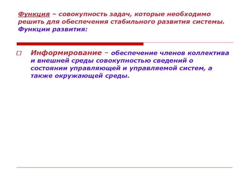 Слайд 24Функция – совокупность задач, которые необходимо решить для обеспечения стабильного