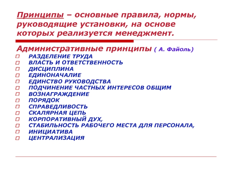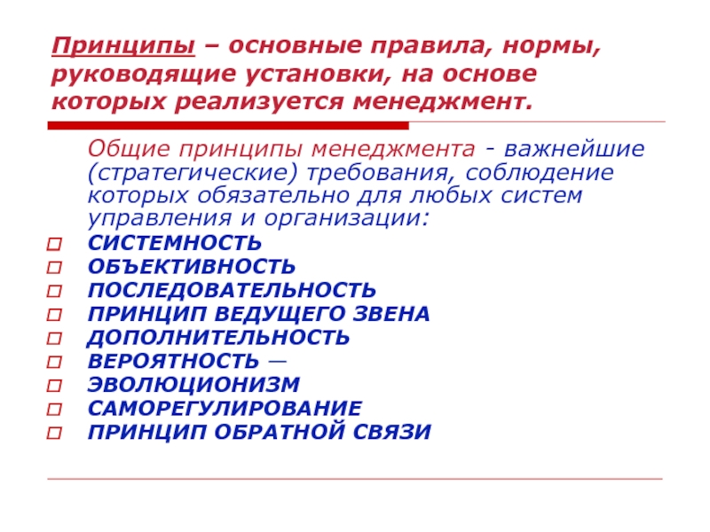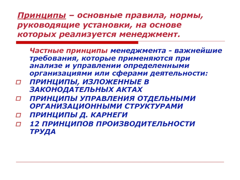 Слайд 13Принципы – основные правила, нормы, руководящие установки, на основе которых