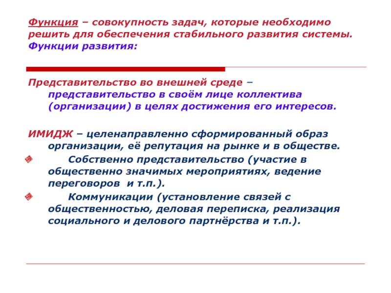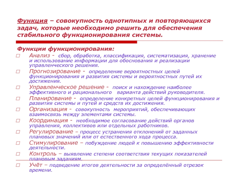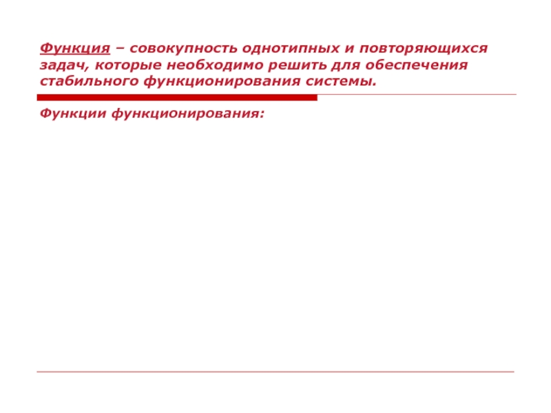 Слайд 28Функция – совокупность задач, которые необходимо решить для обеспечения стабильного