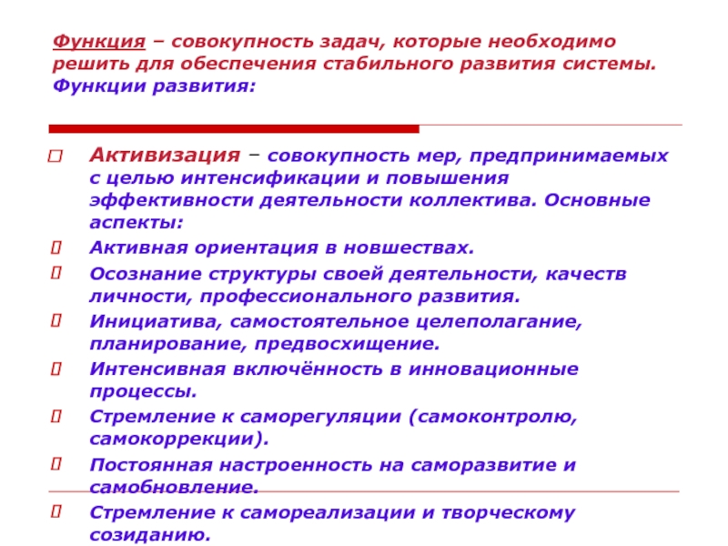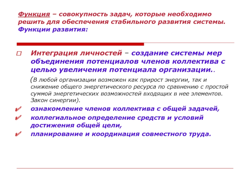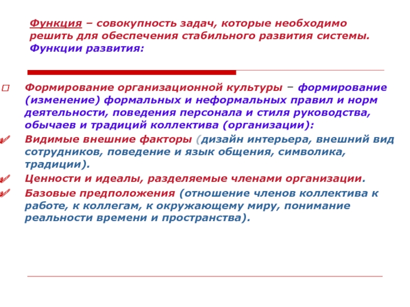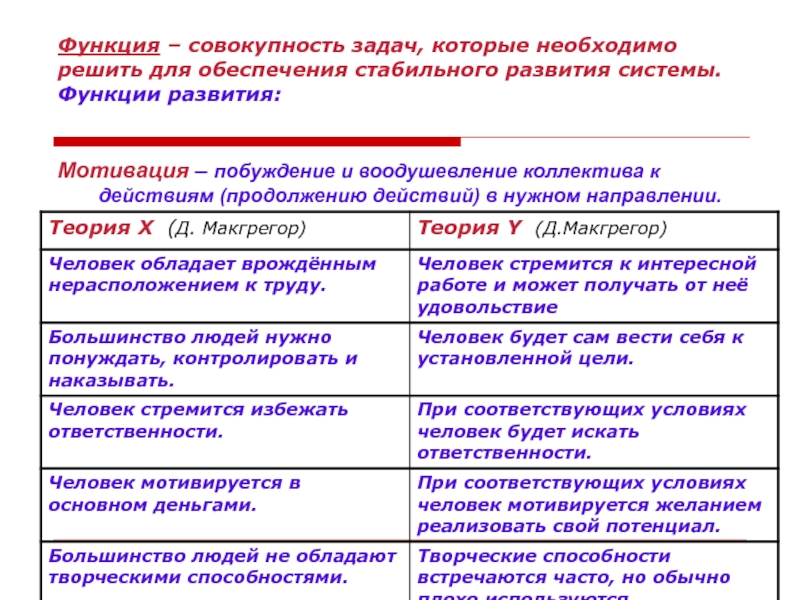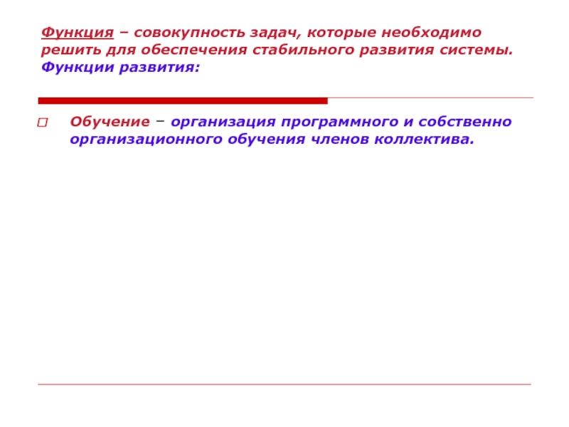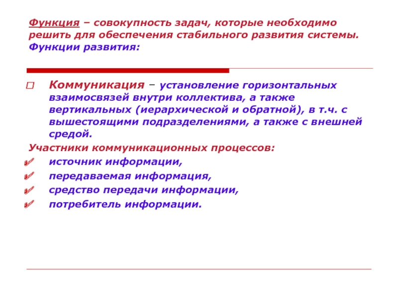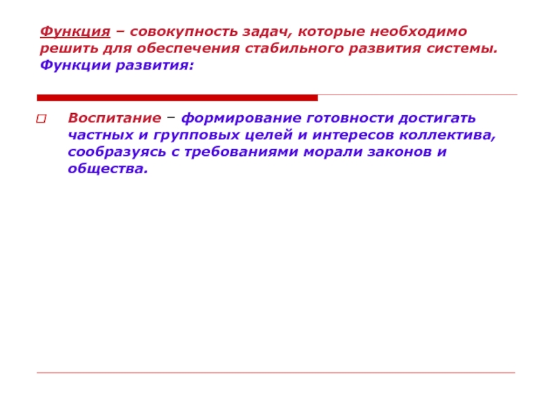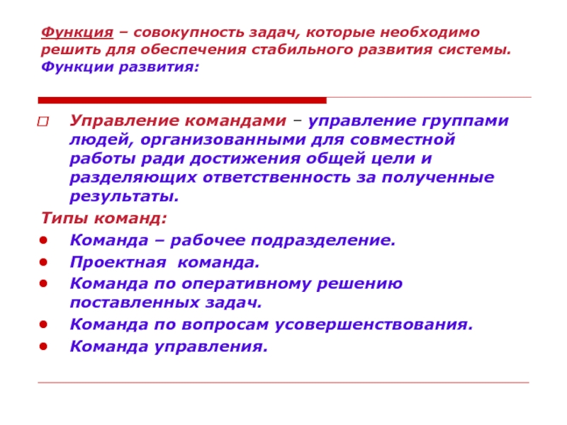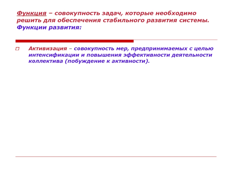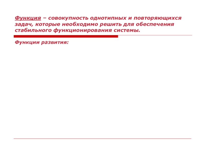 Слайд 26Функция – совокупность задач, которые необходимо решить для обеспечения стабильного