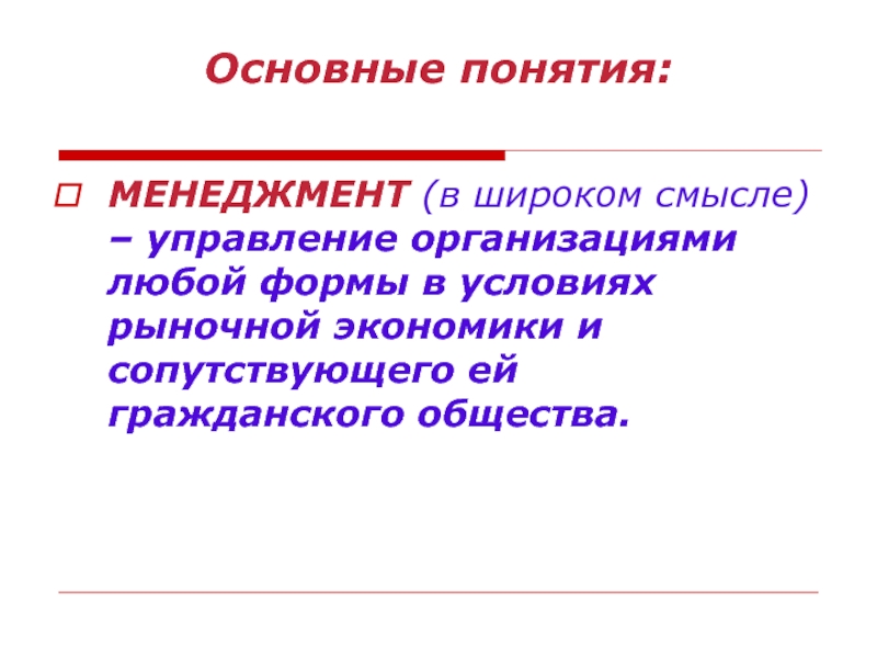 МЕНЕДЖМЕНТ (в широком смысле) – управление организациями любой формы