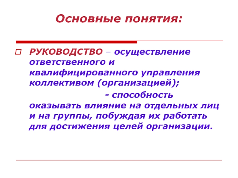 РУКОВОДСТВО – осуществление ответственного и квалифицированного управления коллективом (организацией);