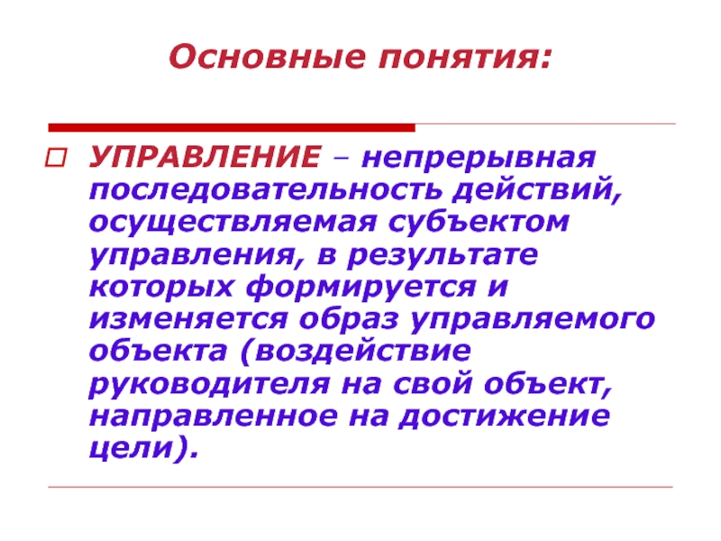 УПРАВЛЕНИЕ – непрерывная последовательность действий, осуществляемая субъектом управления, в