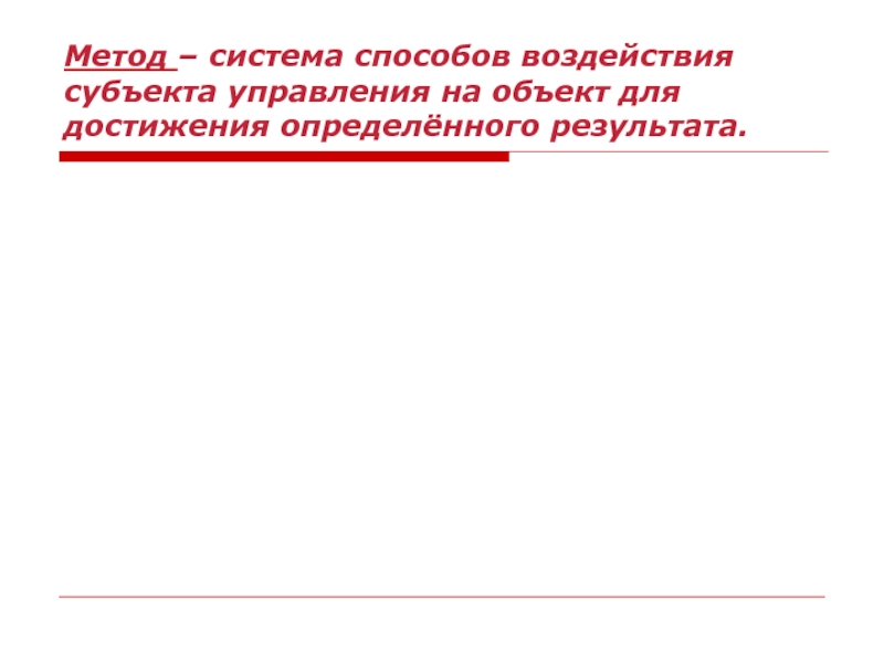 Слайд 33Метод – система способов воздействия субъекта управления на объект для