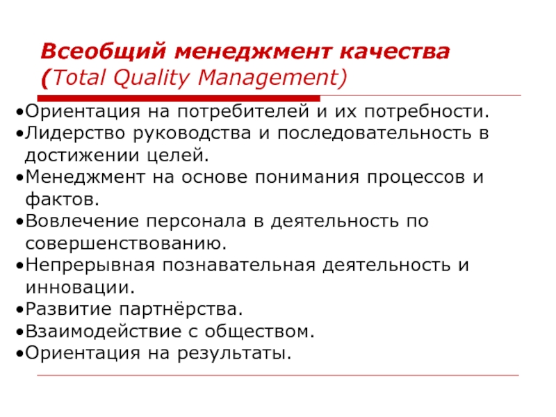 Слайд 35Всеобщий менеджмент качества (Total Quality Management)