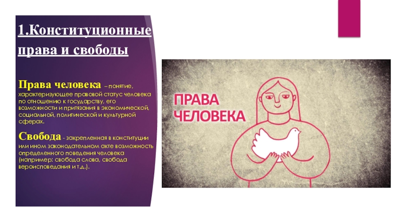 Свобода - закрепленная в конституции или ином законодательном акте возможность определенного поведения человека (например: свобода слова, свобода вероисповедания и т.д.).