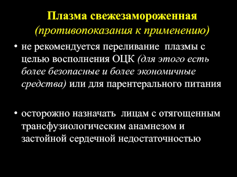 не рекомендуется переливание плазмы с целью восполнения