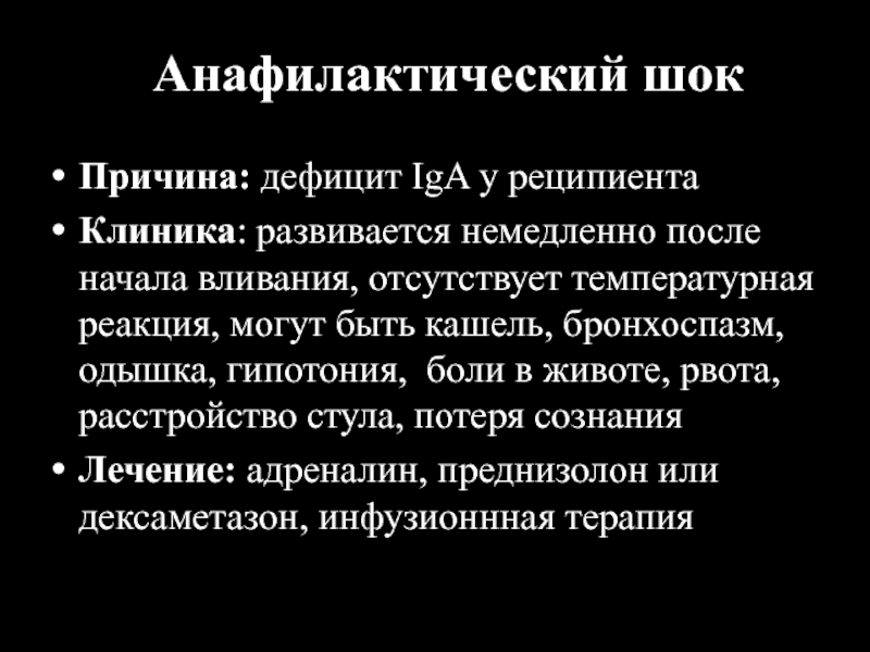 Причина: дефицит IgA у реципиента