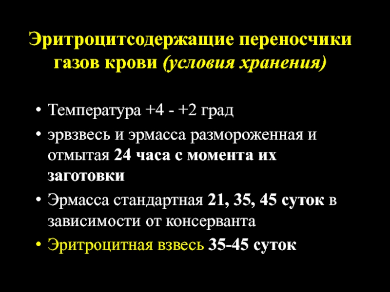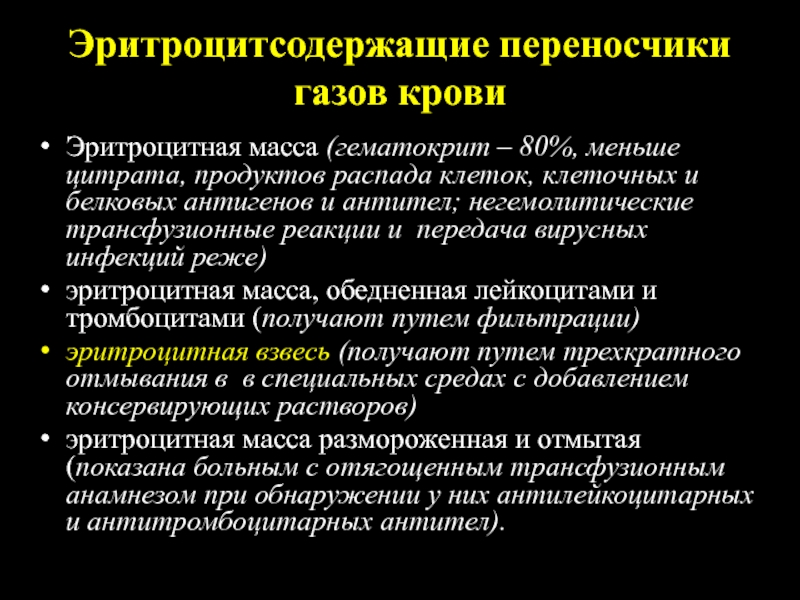 Эритроцитсодержащие переносчики газов крови (эритроцитная взвесь, масса, отмытые