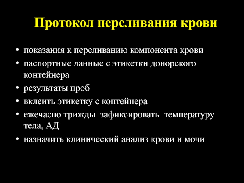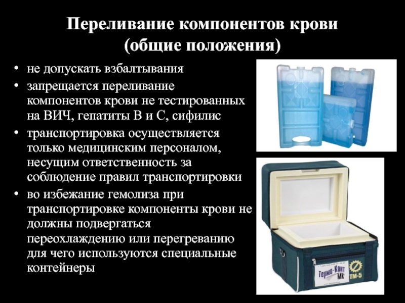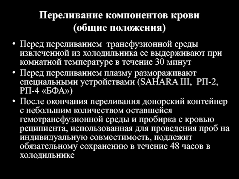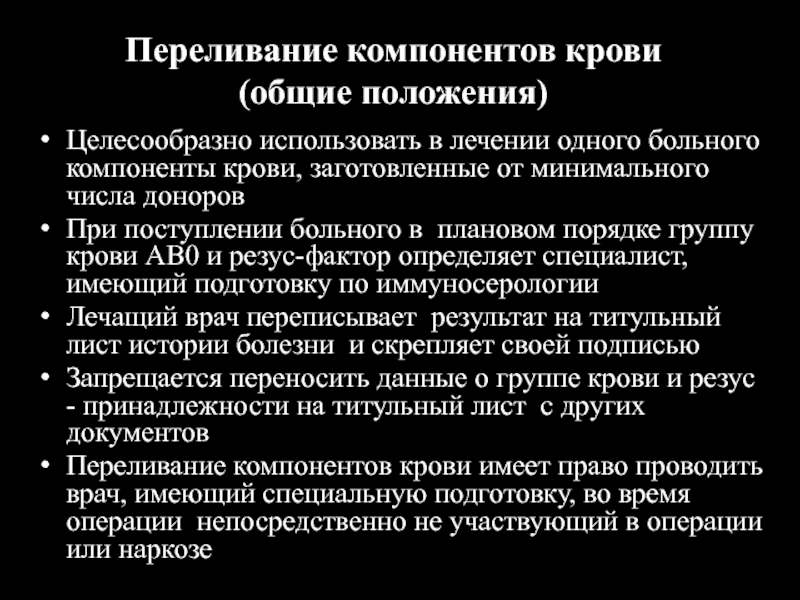 Слайд 13Переливание компонентов крови