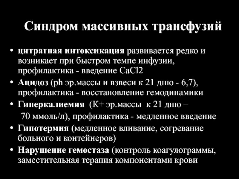 Слайд 47Синдром массивных трансфузий