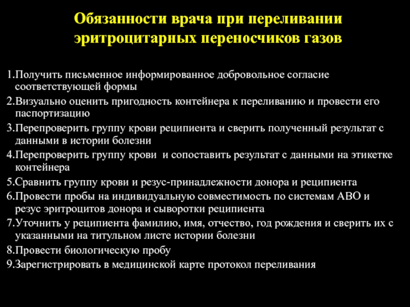 Основные действия врача при переливании крови