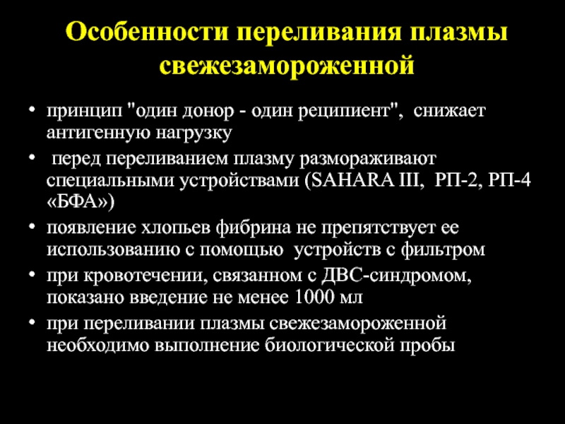 Слайд 37Особенности переливания плазмы свежезамороженной