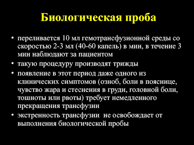 при переливании плазмы свежезамороженной необходимо выполнение биологической пробы