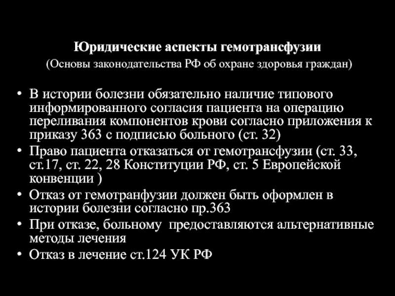 Слайд 49Юридические аспекты гемотрансфузии