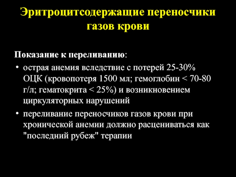 показана когда кровопотеря превышает 20% ОЦК