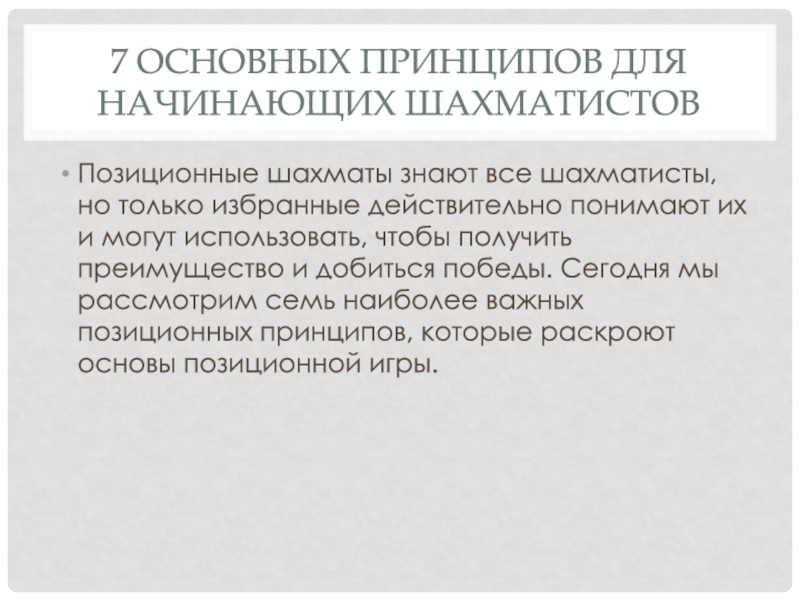 получить преимущество и добиться победы. Сегодня мы рассмотрим семь наиболее важных позиционных принципов, которые раскроют основы позиционной игры.