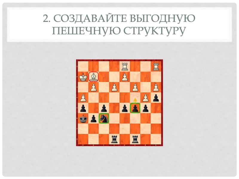 Однако создавая благоприятную пешечную структуру, которая подходит для Ваших фигур, Вы не только улучшаете свои фигуры, но и делаете менее комфортной игру соперника.