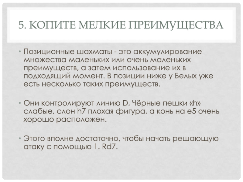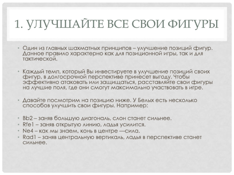 улучшение позиций фигур. Данное правило характерно как для позиционной игры,