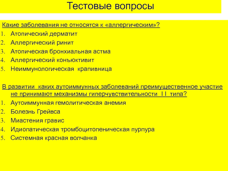 Какие заболевания не относятся к «аллергическим»?