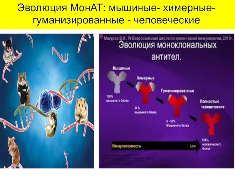 Слайд 10Эволюция МонАТ: мышиные- химерные-гуманизированные - человеческие