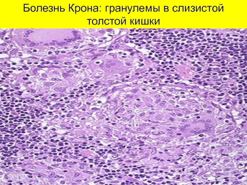 Слайд 22Болезнь Крона: гранулемы в слизистой толстой кишки