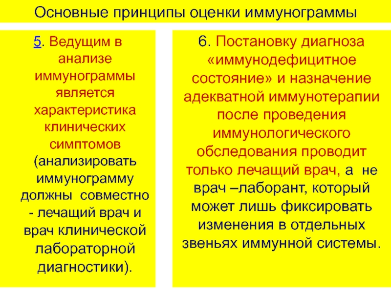 Слайд 86Основные принципы оценки иммунограммы