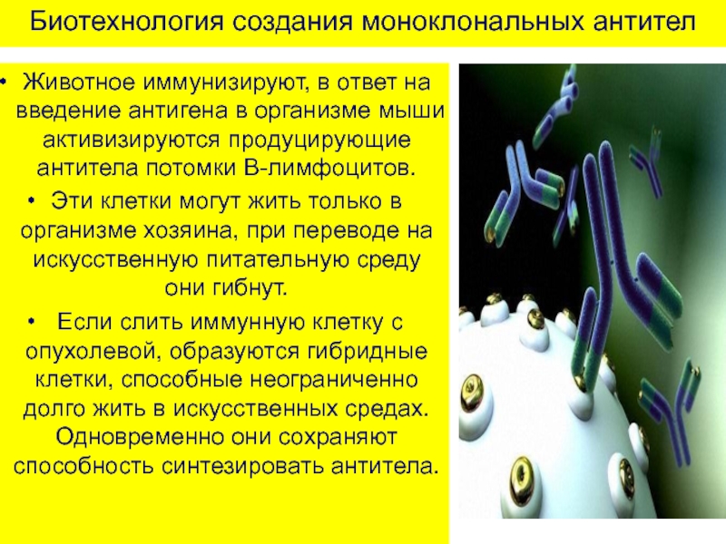 Слайд 7Биотехнология создания моноклональных антител