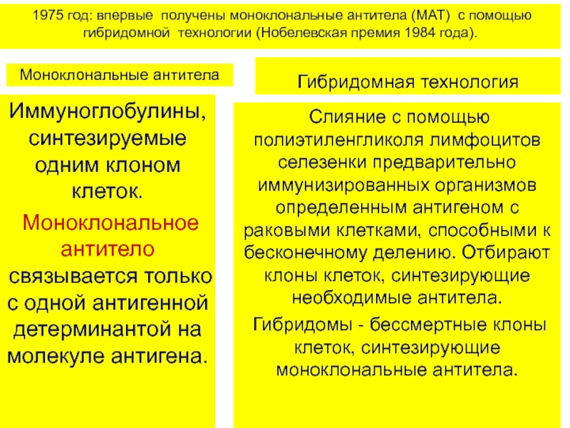 Слайд 5 1975 год: впервые получены моноклональные антитела (МАТ) с помощью
