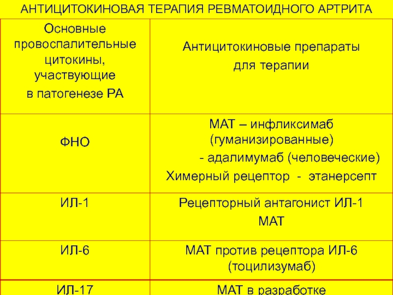 Слайд 20АНТИЦИТОКИНОВАЯ ТЕРАПИЯ РЕВМАТОИДНОГО АРТРИТА